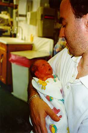 Here are the first two photos of David Abraham Smith. Taken within hours (ok, days) of his birth, they show the young man spending some quality time with Mom and Dad.
